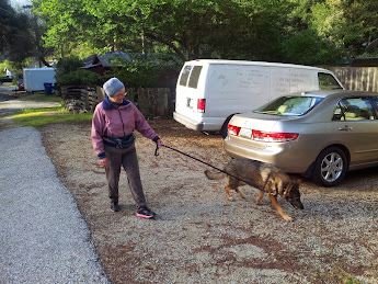 - Walking on a loose leash, both beside the human handler and at a distance, depending on the length of the leash.